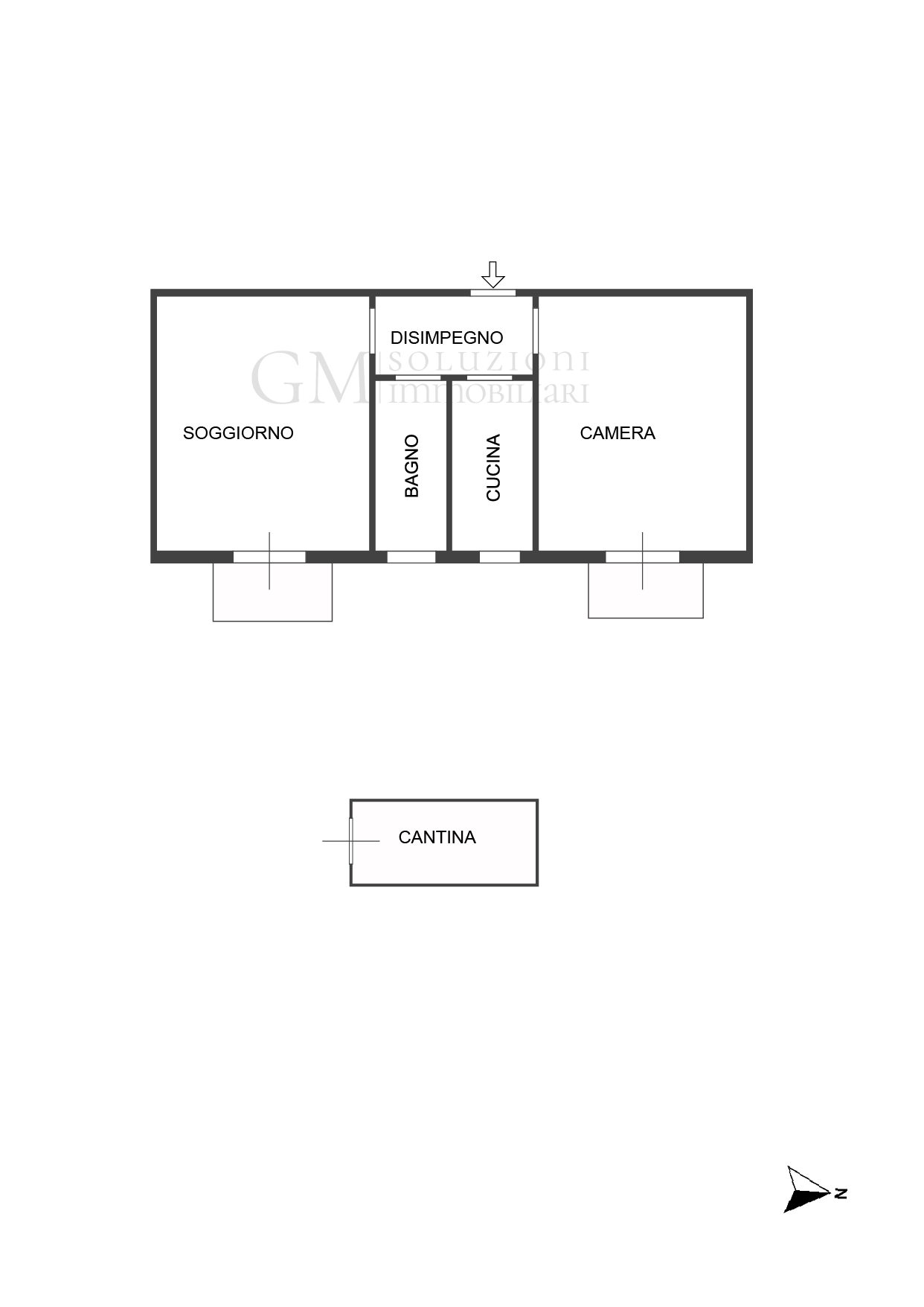 ingresso in disimpegno, soggiorno, disimpegno che conduce alla cucina abitabile, camera e bagno con doccia, ripostiglio in quota accessibile da tutti i vani. Completa la proprietà, una cantina al piano interrato e servizio portineria.